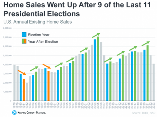Did you know that real estate sales have historically risen in 9 out of the last 11 election cycles over the past 46 years? The only exceptions were in 1981 and 1989. This trend shows how the real estate market often moves independently of political shifts, with strong buyer interest persisting through various administrations.